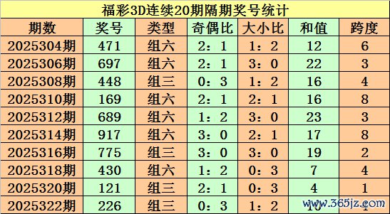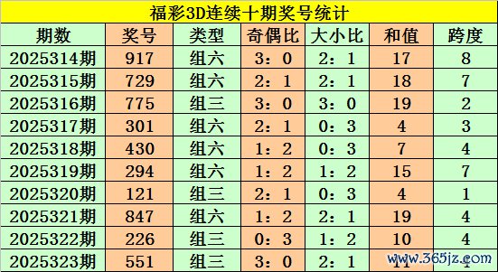 跨度:近5期跨度散布在1-7之间,振幅为7点,散布止境分散,上期跨度为4,重叠出现,本期看好跨度走小,原谅跨度2。